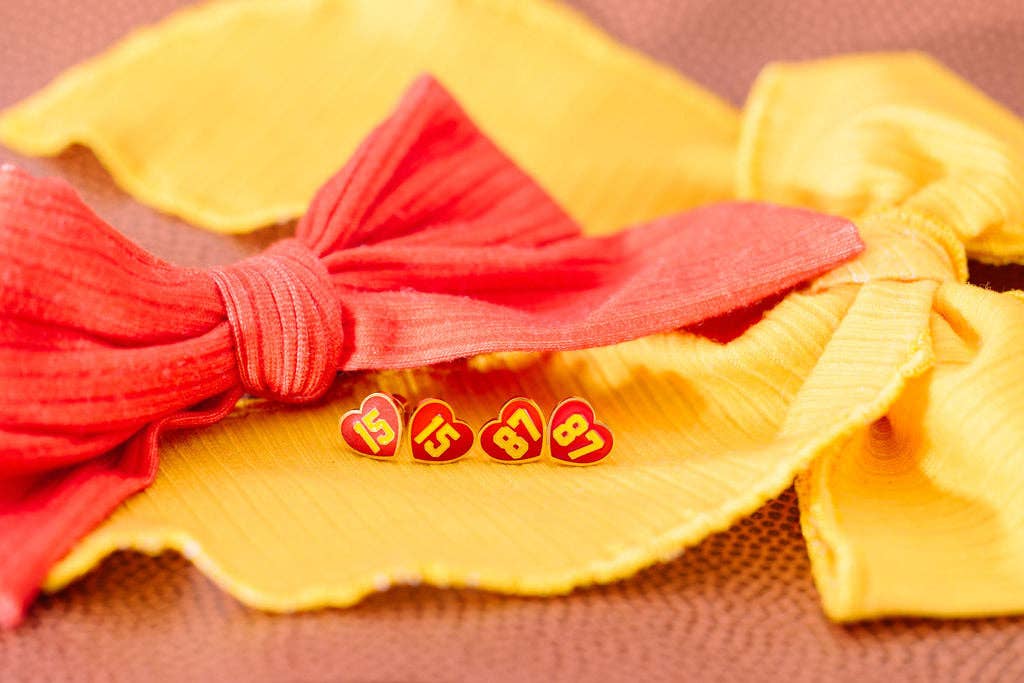 In our RED era! Designed with active girls in mind. Our earrings feature a comfortable, screw on back and are gentle on even the most sensitive ears. Play, swim & sleep in comfort. Materials: Hypoallergenic Surgical grade stainless steel posts Lead, Nickel, Cadmium & Copper Free 10mm enamel details Details: Flat, screw-on back for ultimate comfort Waterproof materials will not tarnish or turn skin green ✨ BONUS ✨ Every pair comes with an extra pair of backs!