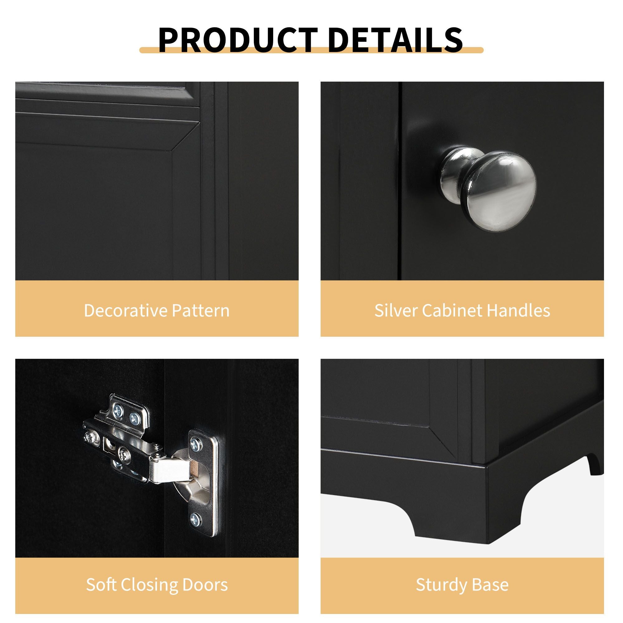 Thoughtful Details: Considering the humid environment in the bathroom, the door hinges and handle are made of stainless steel, which is not easy to rust. In order to keep silent when open and closing the door, the soft closing door is selected for this cabinet. Round door handle on the door, creating a modern look that is smooth to the touch and pleasant to use.
